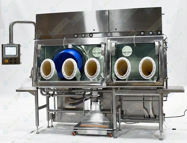 双舱防护隔离器用于HPAI物料称量,取样,集成高精度称系统,通过负压实施“遏制”粉末外溢,确保EOB5级防护等级。 产品应用:桶体物料分装/投料(有毒有害(粉尘) 保护对象:人员和环境VIEW -