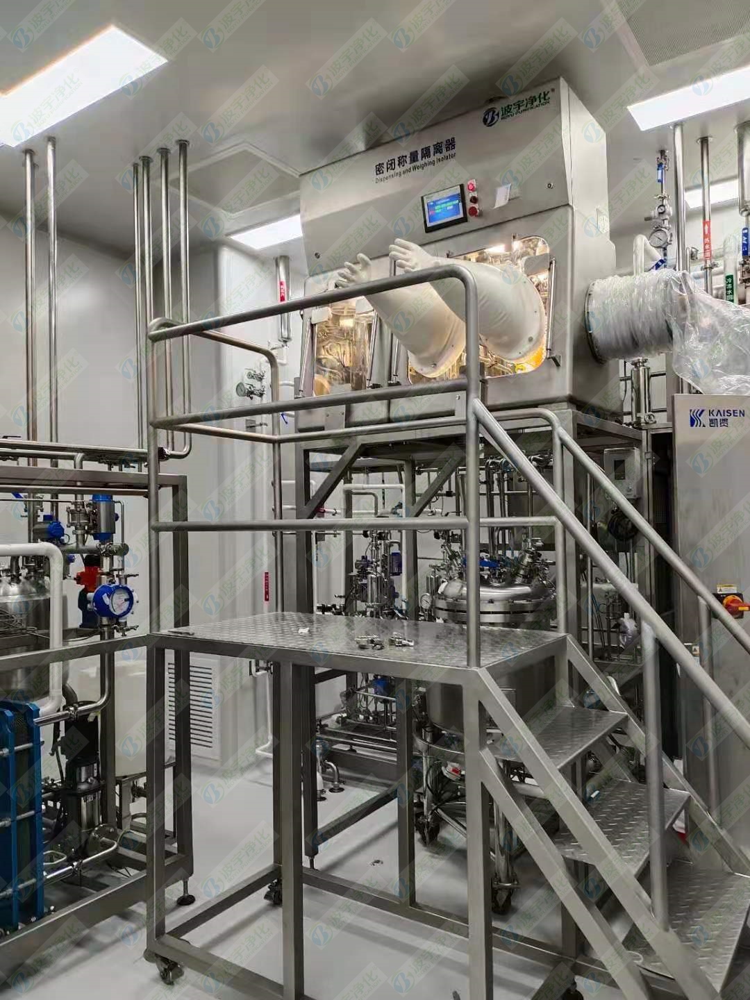 防护投料隔离器:双舱体防护隔离器,紊流,负压控制,集成称重,投料系统,结合分装阀门,喷淋系统确保清洁无死角。 100L, 400L反应釜可移动切换就位。VIEW -