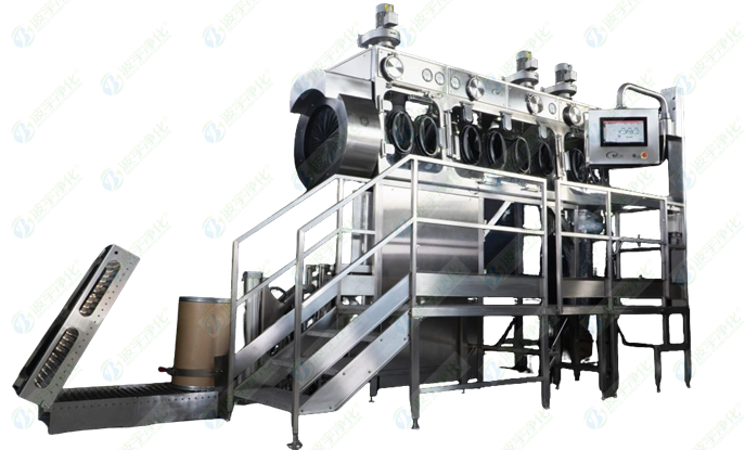 通过桶体提升,虹膜结构,形成一套全自动化粉末配送系统,能够处理OEB 4材料,形成连续作业的卸料平台,适用于II类2区环境。